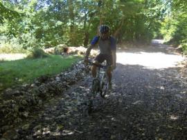 Omleta de la pizzerie a fost printre cele mai bune si clar vom manca acolo si maine dimineata. La 11:30 ne pornim ... pe sosea la un moment dat dam peste un punct de control. Responsabilul sare sa vada care-i treaba , nu veneam din directia care trebuie ... si abia apoi isi da seama ca nu avem numere de concurs pe bicileta si deci nu suntem in concurs. Oricum suntem primii :) , si vom ramane primii inca 3 puncte de control de aici incolo. Abia dupa Iabalcea incep sa ne depaseasca concurentii si dupa ritmul pe care il prezinta ne bucuram inca o data ca nu suntem inscrisi in concurs. La scurt timp dupa "depasire" noi ne abatem de la traseul de concurs si coboram in dreapta catre cantonul de la pestera Comarnic. Reusesc sa fac o pana pe coborarea pe bolovanis si ne punem sa reparam, dar surpriza .. nu am cheie sa dau jos roata, bicicleta mea e singura care mai are inca suruburi normale la roti, si binenteles eu nu am cheia necesara. Dupa ce oprim o masina in cautarea unei chei dar nici ei nu au, nici macar un patent , ne decidem sa reparam camera direct pe bicicleta, fara sa mai dam jos roata. Dupa 10 minute si cateva pompe suntem iarasi buni de drum. La Comarnic stam cam 10 minute, cat sa intrebam de drum, si ne dam seama ca e mai bine sa ne intoarcem si sa intram din nou pe traseul de concurs. Asta si facem si la 17:30,dupa o coborare destul de lunga, in timpul careia il intalnim si pe Negru, inscris la 80, ajungem inapoi in centrul Resitei, dupa 45km parcursi. Ne asteapta Ioana, si mai intai si mai intai luam ceva de mancare ca sa ne linistim foamea. Apoi asistam la concursul de trial si ceva mai tarziu la premiere. Trialistii si DownHill-erii din Tm , prieteni buni cu noi sunt si ei pe acolo, si ne dam intalnire seara la concertul Rock organizat de baietii din Resita. Pentru ca mancasem deja mai devreme , ne pornim spre corturi, ne schimbam de hainele cu care am pedalat toata ziua si ne prezentam la concert. E la 100m de camping in cladirea in care ne lasasem bike-urile cu o noapte inainte si unde le vom lasa si in noaptea asta.