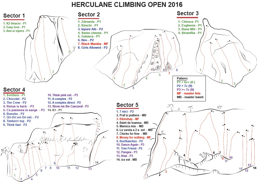 Here is the topo used for this year's Herculane Climbing Open.