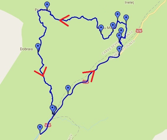 Startul se va da pe valea Cernei, la 11km in amonte de Baile Herculane de pe podul de beton de la coada lacului de acumulare Prisaca de pe Cerna.