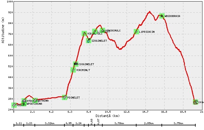 Traseul are o lungime de 21.4km si 1100m diferenta de nivel, timp limita de parcurgere 5h si este marcat cu marcaj turistic punct galben. In zonele unde marcajul nu a putut fi aplicat (zone de pajiste, tufe) traseul va fi balizat corespunzator de catre organizatori astfel incat sa nu existe probleme de orientare.