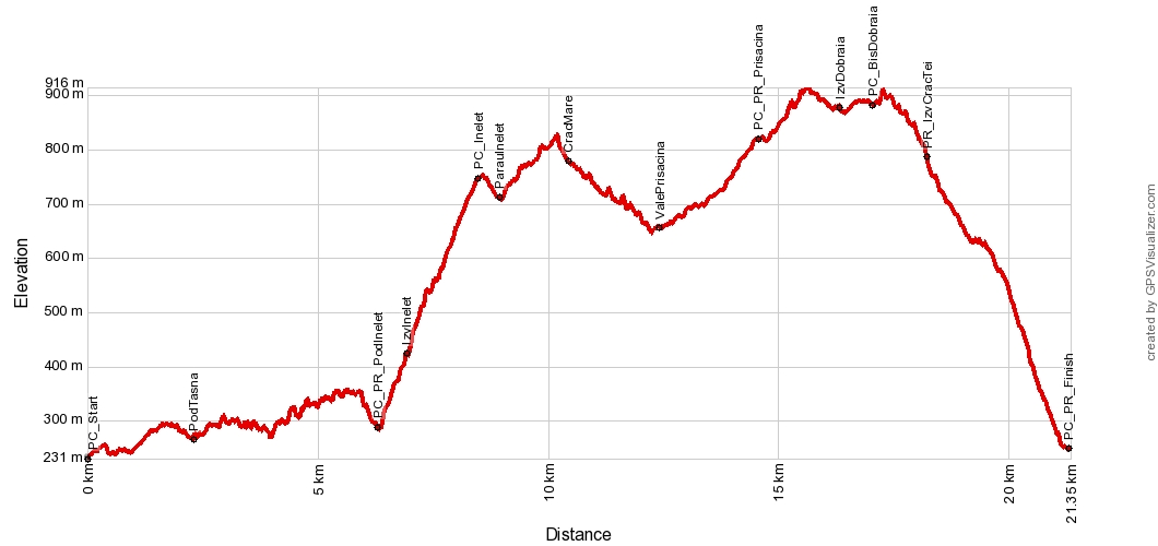 Semi-maratonul se desfasoara prin zonele pitoresti ale catunelor Inelet, Cracul Mare, Prisacina si Dobraia, cu panorame deosebite asupra vaii Cernei, muntiilor Mehedinti si abrupturilor stancoase ale Cheilor Prisacinei.