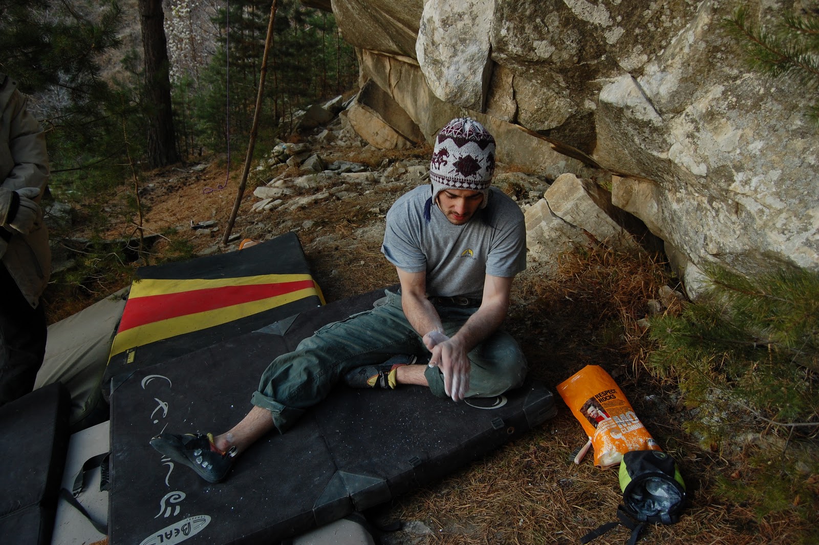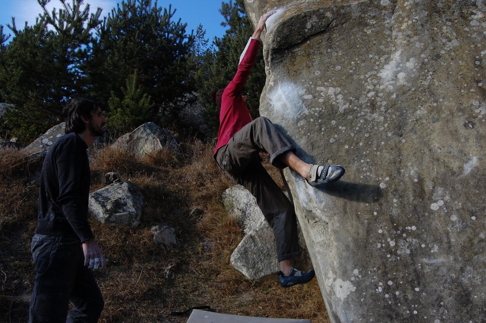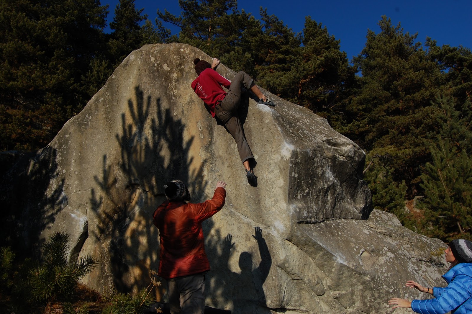 Acum la Enola Gay. Acolo e mai toata lumea, Neghi cu Bifi incercand situl care e pe la gradul 8A (Bifi a si reusit FA-ul anul asta: http://www.youtube.com/watch?v=jzPrVAETgxE&feature=youtu.be), Andrei incercand sa il faca... Eu auzisem comentarii despre traseu cum ca ar fi cel mai frumos traseu de bouldering din tara iar la gradul 7C a fost clar ca mi-am propus inca de acasa sa il fac.