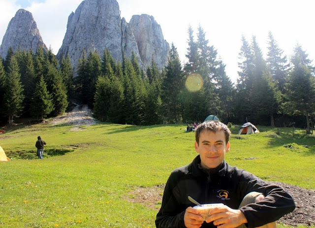Mardale cu fetele impreuna cu Doru si cu Markus au plecat de joi seara cu destinatia Tg Mures, iar eu cu Flavia si cu Diana spre Sibiu. Pana in Harghita e drum lung asa ca ne-am oprit si ne-am plimbat prin Sibiu, am vizitat castelul Bran, un pit stop langa Brasov la bunicii Flaviei la o cina ardeleneasca, refacem proviizile de gem, ne luam ramas bun si pe la miezul noptii ajungem in Balan de unde a doua zi urma sa o luam pe jos. Dimineata ne intalnim cu Luci din Tg Mures, incarcam ATV-ul pus la dispozitie de salvamont cu bagajele si pornim la deal. Pana la cabana avem in fata o diferenta de nivel de 600-700m, neobisnuit de mult pt un weeken de escalada. Sus ne intalnim cu restul echipei din Tm, ne lasam bagajele in cabana si ne punem sa mancam. Din pacate vremea i-a cam descurajat pe majoritatea care doreau sa vina la festival si a rezultat o prezenta cam redusa.