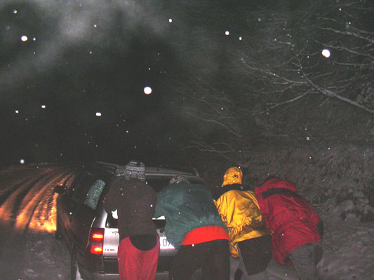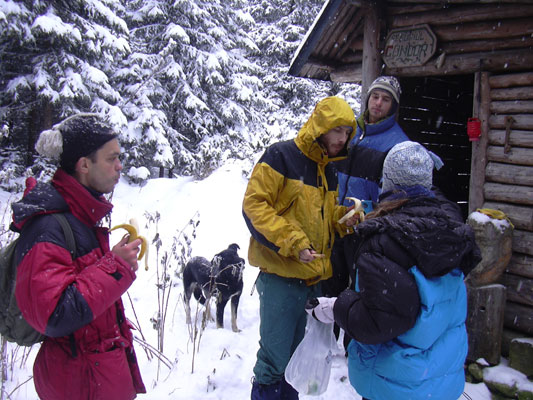 Vineri pe la ora 18 reusim sa plecam din Timisoara, doua masini , cu destinatia Rausor in Retezat. Primul soc il avem la Billa de unde il luam pe Norbi , care ... s-a tuns. Ne ia ceva timp sa ne obisnuim cu noua lui infatisare. Cu mine in masina mai sunt Diana si Margelatu. In Tico sunt Lars si Anne. De la Caransebes incolo incepe sa fulguie si cand o cotim spre Rausor din drumul national, ninsoarea se inteteste. Urcarea pana in statiune , adica cei 16 km pe drum cam forestier incepe bine , dar se termina prost , adica cu impinsul masinii in zapada proaspata de 10 cm. Ne ia aproape 2 ore sa urcam amandoua masinile pana in Rausor. Planul initial in care mergeam sa dormim la micutul refugiu Condor de pe valea Stevia s-a schimbat radical de cand stim ca putem trage in cabana din Rausor a cumnatului lui Lars. Zis si facut, ne instalam in cabana unde mai sunt doua doamne ce "pazesc" constructia unei cabane invecinate si sunt ca si noi, "in gazda" acolo.