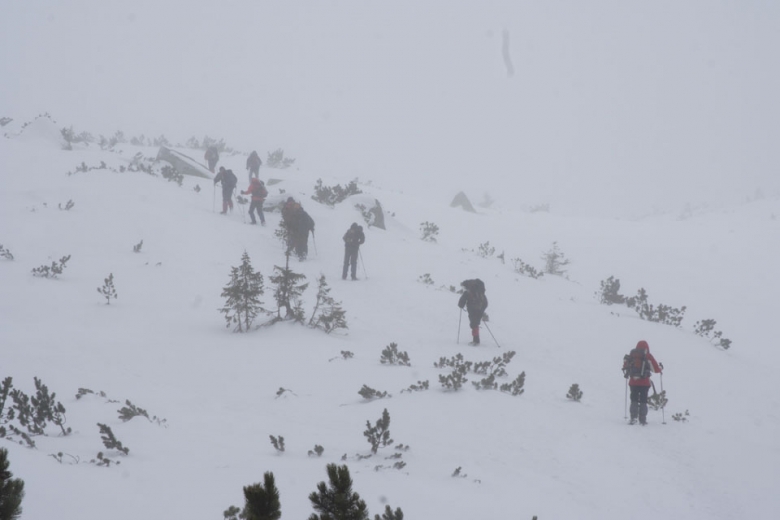 Vremea era buna: zapada era destul de „uscata” si mica –nu era risc de avalanse– vantul batea foarte slab, temperatura un pic sun zero si cerul variabil.