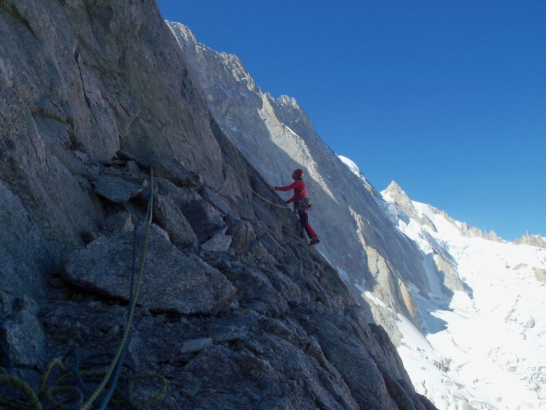 Avem o fereastra de 2 zile de vreme buna si hotaram sa facem traseul Contamine din Petites Jorasses, a carui schita o primim de la un spaniol cu care ne-am imprietenit in camping.