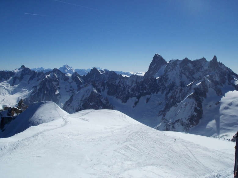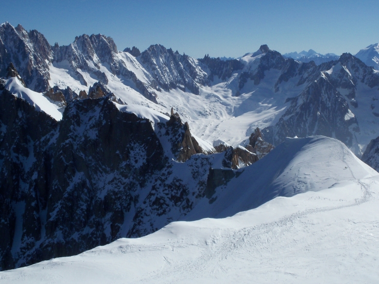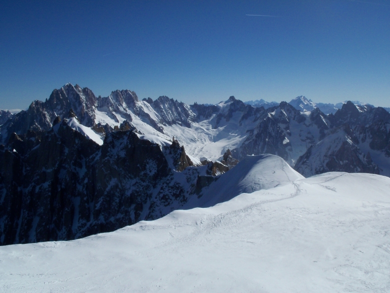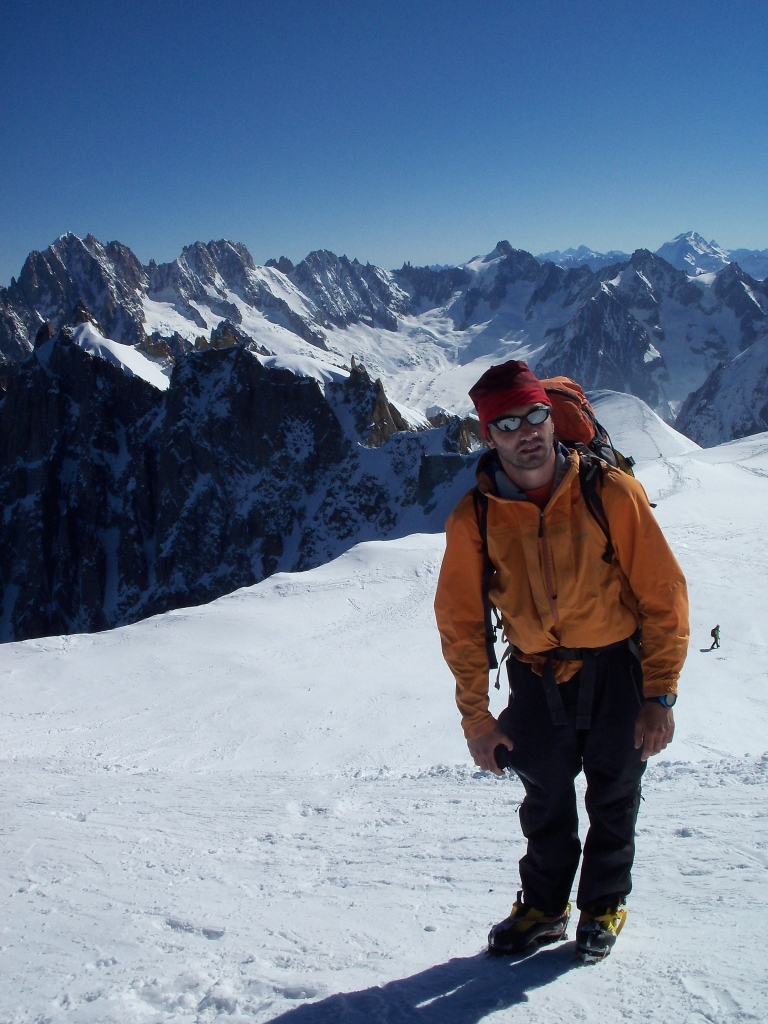 Pornisem cu ideea de a face traseul Eperon Frendo din Aiguilles des Chamonix. Iesind din telecabina de Aigille du Midi la statia intermediara, Plan d’Aiguille, am constatat ca Eperon Frendo este aproape in totalitate acoperit de zapada, ce parea a fi mai degraba pulvar, lucru ce ar fi ingreunat mult ascensiunea. Au urmat lungi dezbateri, cu argument si contra-argumente ascensiunii traseului Frendo. Neavand certitudinea consistentei zapezii din traseul vizat, am hotarat sa urmam planul B, stabilit ad-hoc. Goulotte du Col du Plan (600 m, grad 4, 50-80º) era solutia care ar fi salvat weekendul. Speram intr-o ascensiune rapida, facuta concomitent, dar pe masura ce avansam am realizat ca situatia e « mai mult gri decat roz » ca sa nu spunem « maro». Am urcat lungime dupa lungime prin zapada cu o consistenta ce varia intre zahar si lapte condensat, mereu sperand la momentul in care pioletii si coltarii vor avea in sfarsit priza.