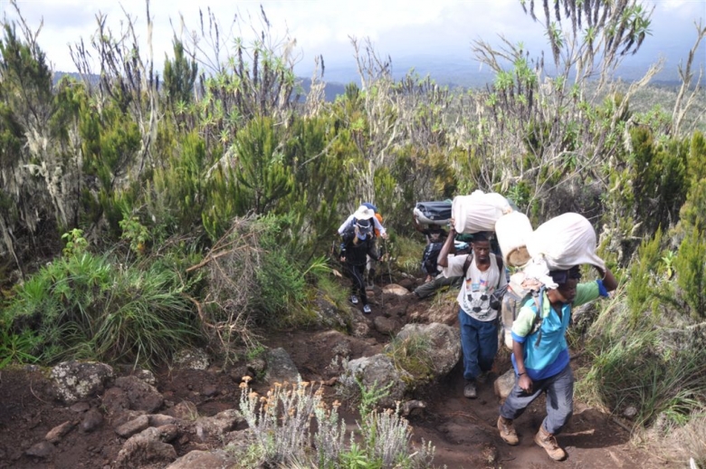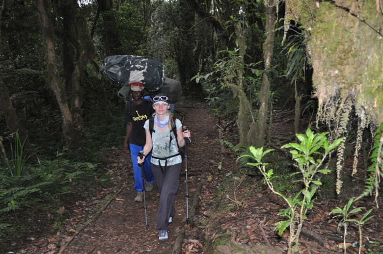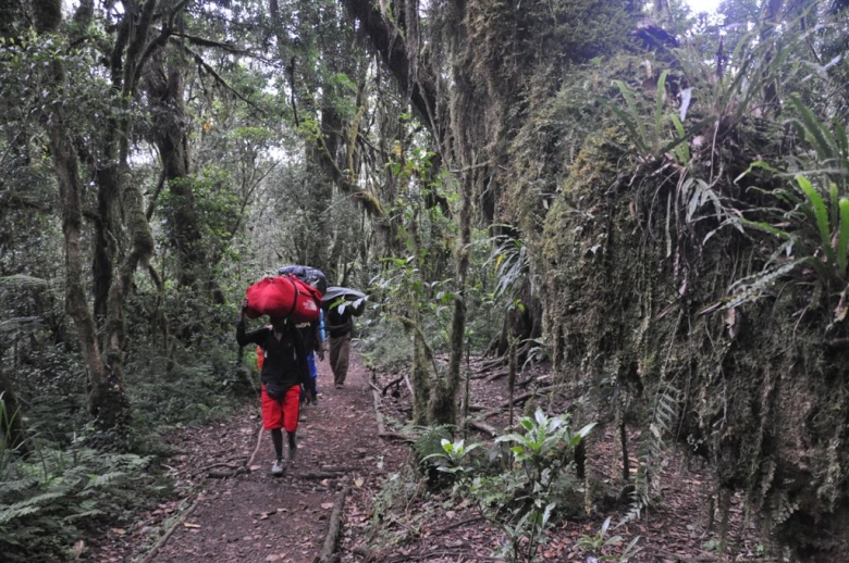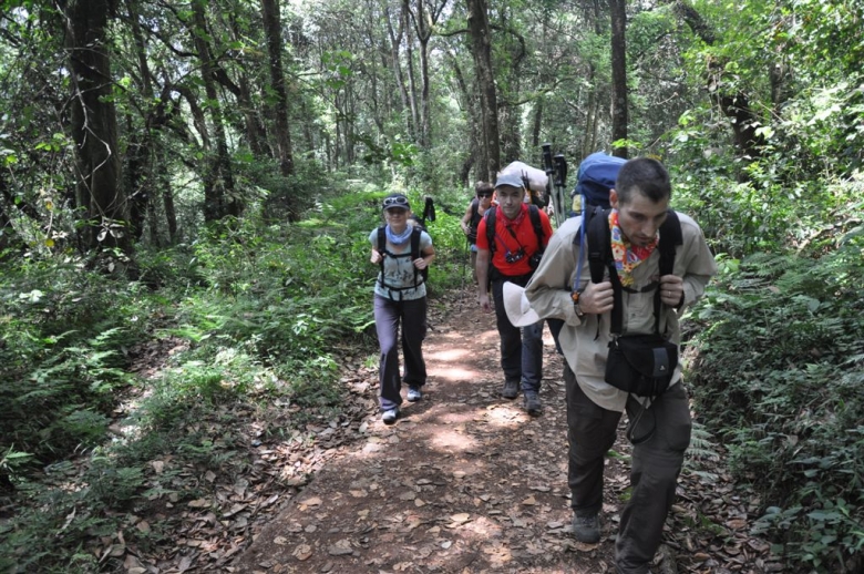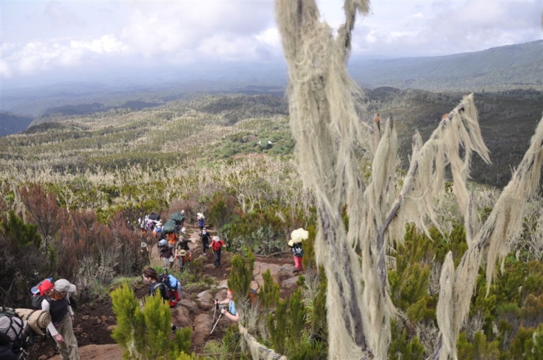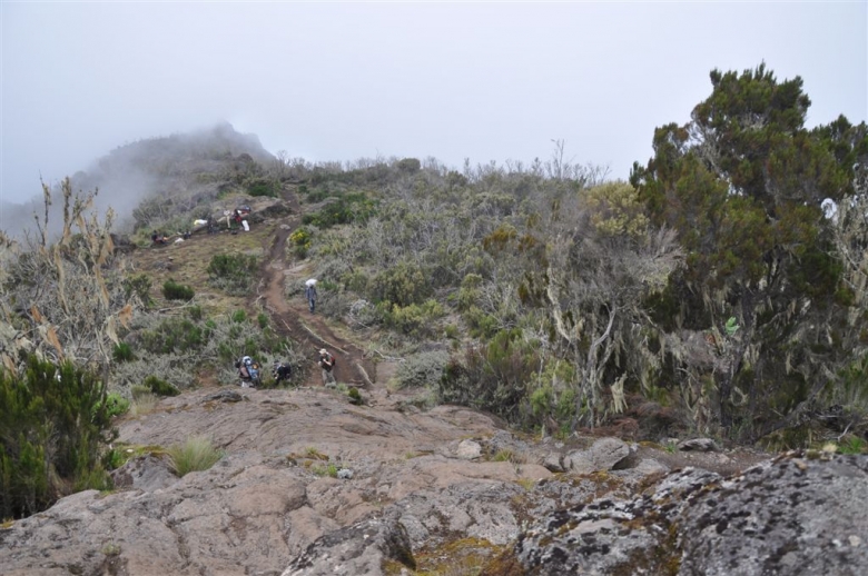 Prima zi: incepe cu formalitatile de intrare in Parcul National prin Machame Gate 1800m. Incepem urcarea printr-o padure tropicala cu umezeala carateristica , drum destul de monoton fara prea multe de vazut si de pozat. Sub amenintarea continua a ploi (era doar sezon umed) ajungem la 3000m in locul Machame Hut dupa mai putin de 4 ore .