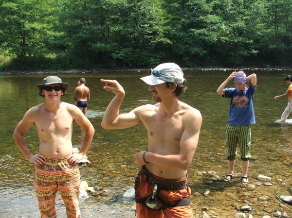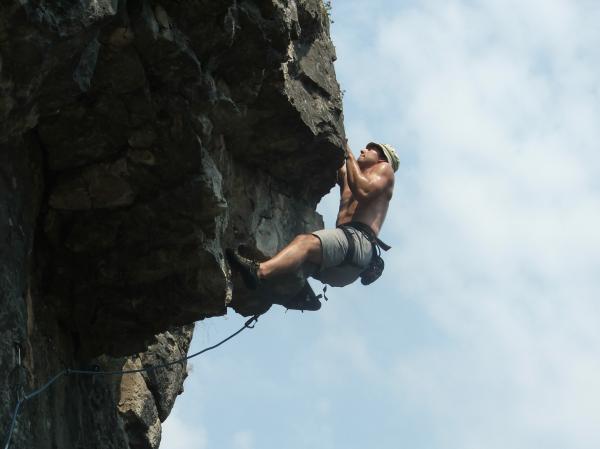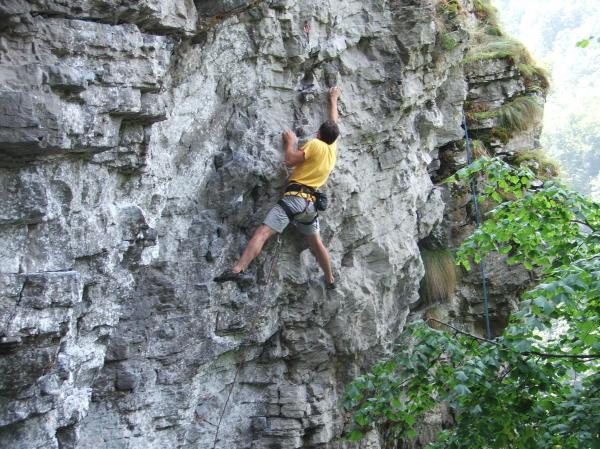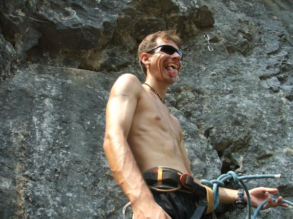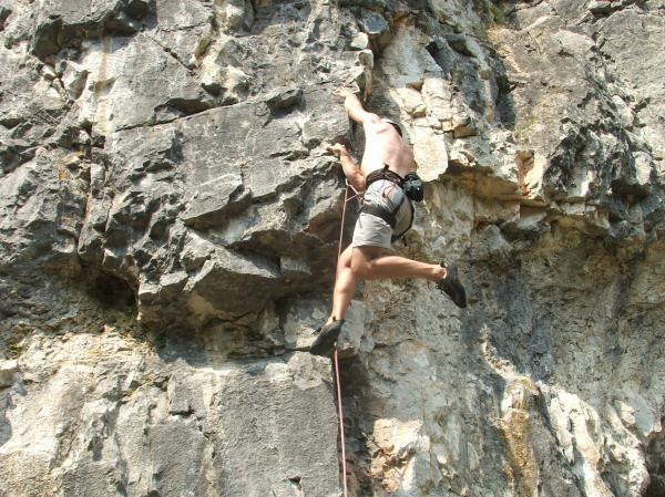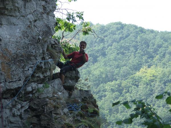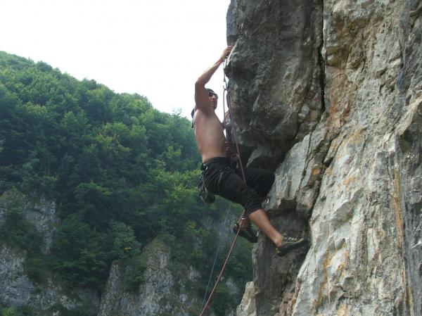 A doua zi , ne trezim devreme, din cauza soarelui, se mai aduna turisti, isi monteaza corturi, dau drumul la manele .. :( si la cabana de acolo nu au cafea .... stiam de la Titi ca nu au cafea, dar am incercat si m-am convins pe pielea mea, in schimb ne-au asigurat ca au bautura, ca la ei la cabana se bea ... si deci ne-am retras la trasee impacati cu ideea ca nu avem cafea in dimineata asta. Incepem sa luam traseele la rand si pana la urma dupa cativa 7-ari ne doboara soarele definitiv. Intre timp apare si echipa de cercetasi ... care catara o mansa , fac rapel si se dau pe o tiroliana , mica de tot .... si binenteles fac baie in Cris. Un alt aspect care m-a nemultumit a fost ca la baza traseelor , e o mizerie de nedescris ... hartie igienica, servetele, pungi, flacoane .. de toate, pentru toti , si binenteles in multe trasee prima ureche lipsa :-s ... pacat!