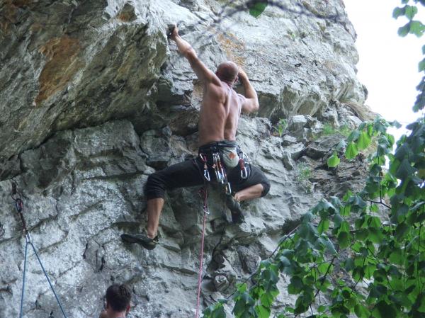La fisuri, doi baieti catara ceva trasee in extrema stanga a falezei , dar noi ne oprim chiar la inceputul ei. Vedem un 6+ .. ala-i de noi in stadiul in care ne miscam. Il facem pe rand si apoi trecem la un 7 care ne pompeaza la antebrate ... prea repede. Cosmin si Silvica fac un traseu de clasic de 2LC , Creasta Soimilor, si in afara de multe poze nu realizam mare lucru ... Coboram inapoi la masini si dupa inca un suc impreuna ... ne despartim cu plan de Herculane peste doua saptamani (asta cu Cosmin) si cu o revedere cand o fi cu restu ... da poate vin si ei la Herculane .. mai stii.
